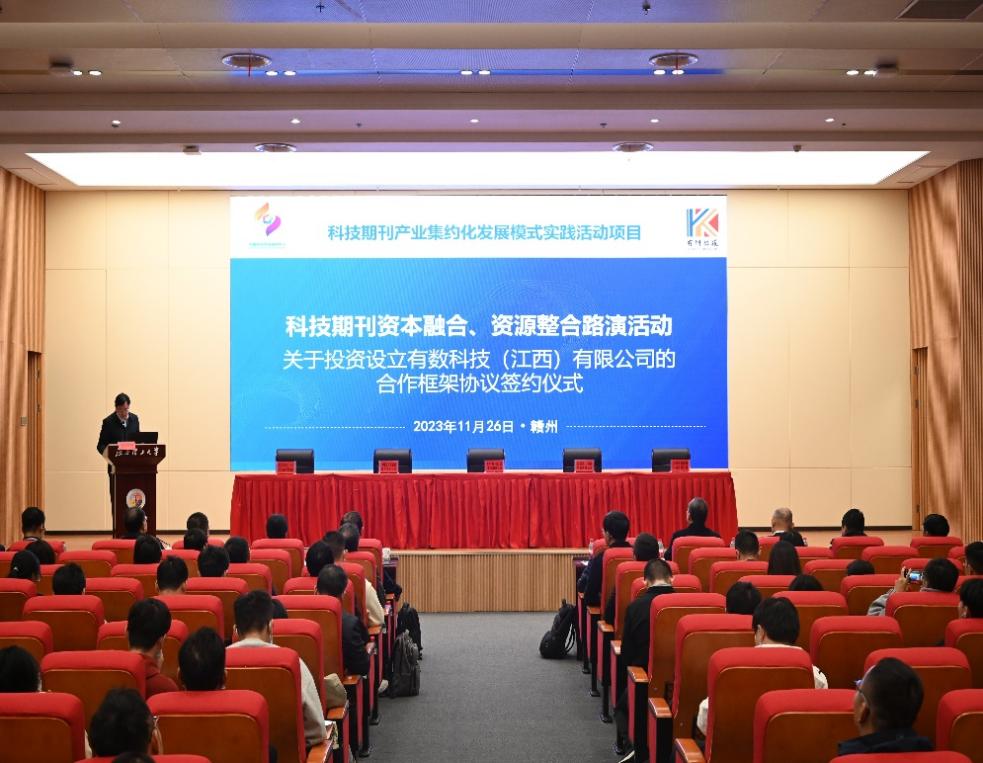 会上,江西理工科技产业有限公司代表学校与有科期刊出版(北京)有限公司、永链元(北京)数据科技有限公司、北京知道同行科技合伙企业、北京云算海数科技有限公司五方共同签署了“关于投资设立有数科技(江西)有限公司”的合作框架签约仪式,并举行了有数科技(江西)有限公司启动仪式。