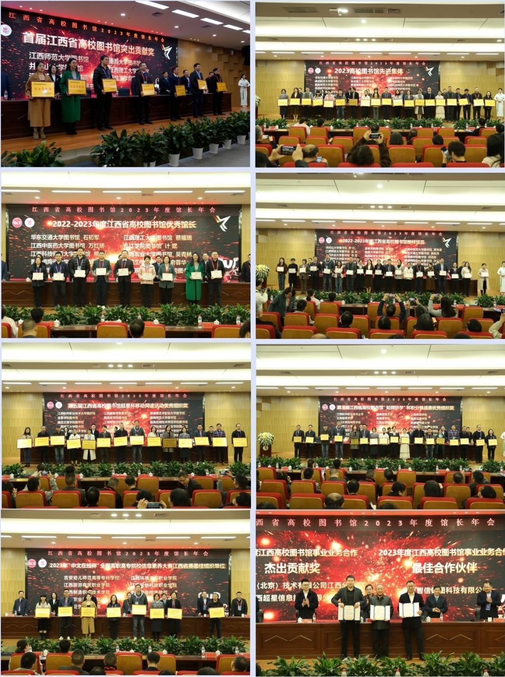 江西省高校图工委副秘书长、南昌大学图书馆馆长邹锦良宣读省高校图工委表彰决定。与会领导和专家为2023年度突出贡献奖、先进集体奖、优秀馆长、榜样馆员等奖项获得者颁发奖牌和获奖证书。