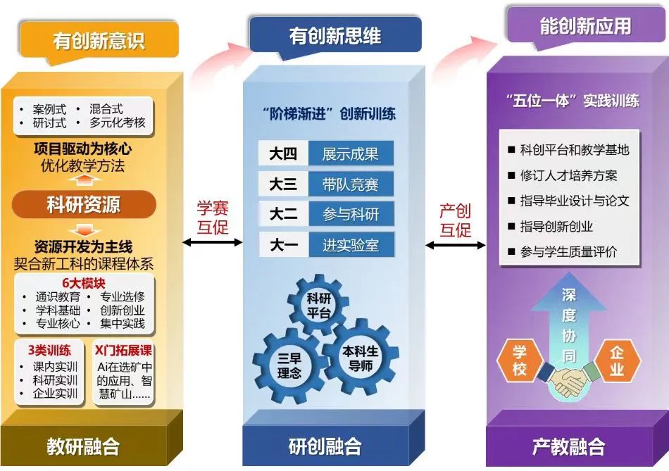 资源与环境工程学院开展了全方位教学改革与实践,将思政引领、创新培养和国际交流贯穿育人全过程,构建了“红色+矿业”特色的“一体两育”大思政育人模式、“三融互促、分层递进”创新能力培养模式、“五措并举”多元式国际化培养模式,培养了服务国家战略资源高效开发的“肯扎根、善创新、国际化”卓越人才。