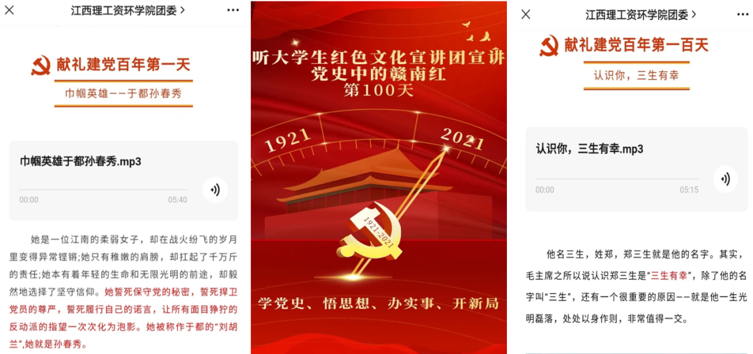 培养了一批“时代发言人”。学院红色文化宣讲团宣扬党的红色文化理念,线上线下、校内校外宣讲发生在赣南红士地上的100个革命红色故事。