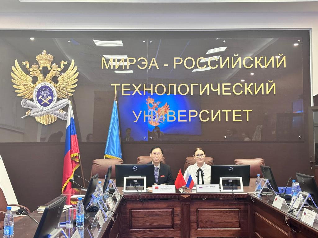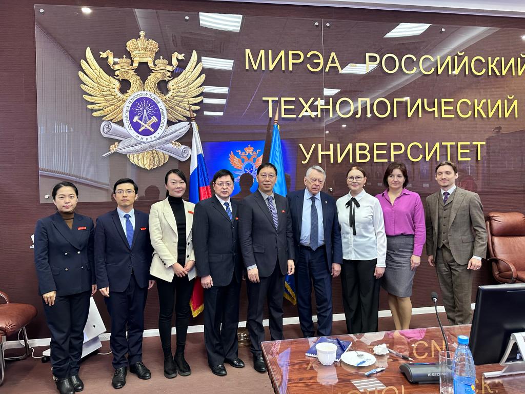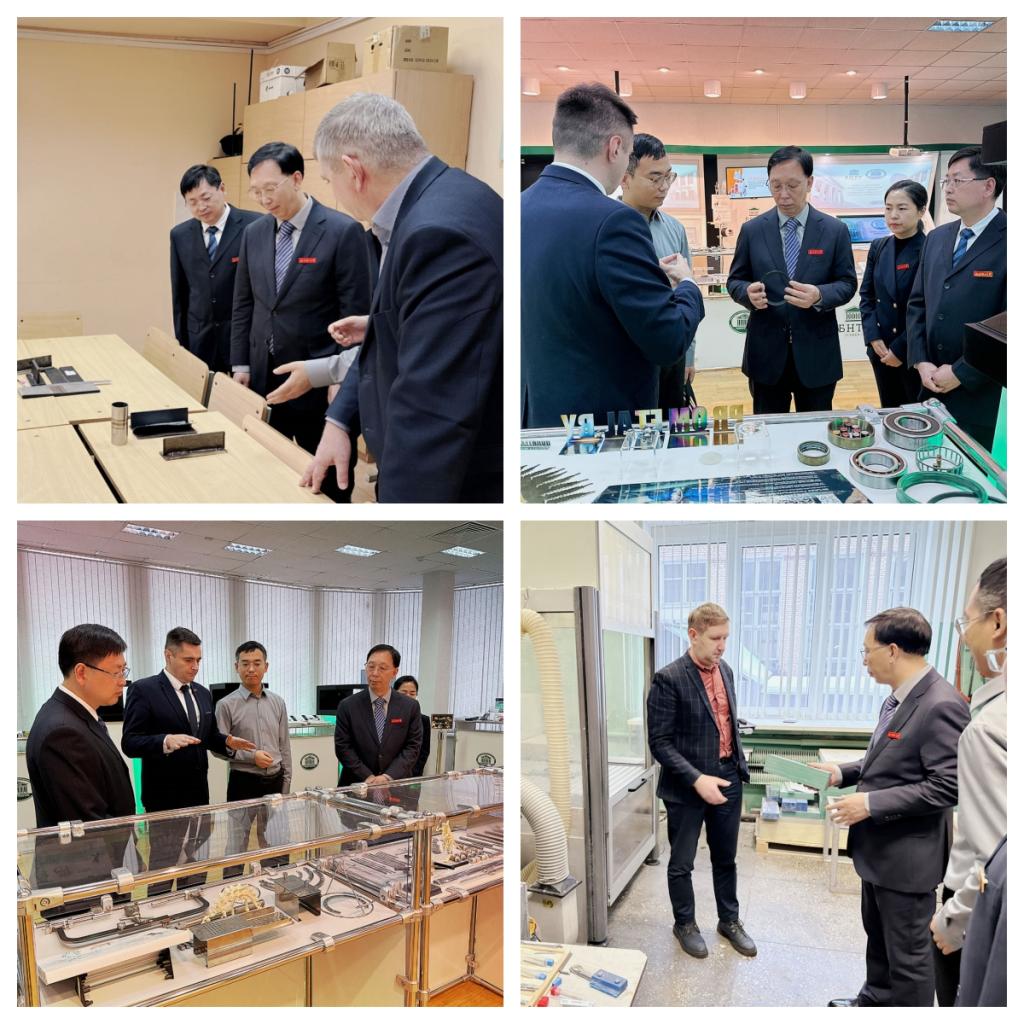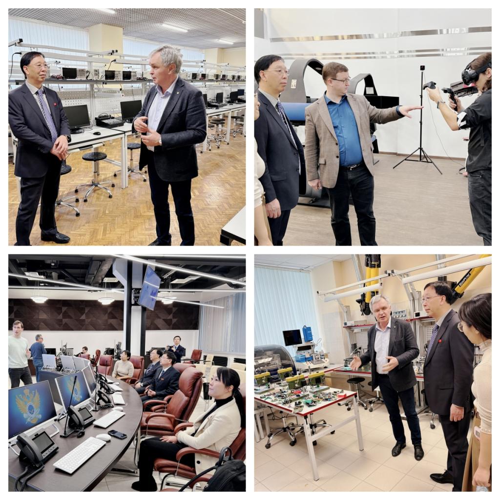 代表团前往俄罗斯国立技术大学与俄罗斯国家科学院院士Alexander S. Sigov交流座谈,与第一副校长伊利娜·谢尔盖耶夫签署合作协议,就机械自动化、材料科学、信息技术、人工智能等学科领域的国际交流与合作及人才联合培养等展开深入探讨,并参观机械自动化、材料与化学、人工智能等相关实验室。