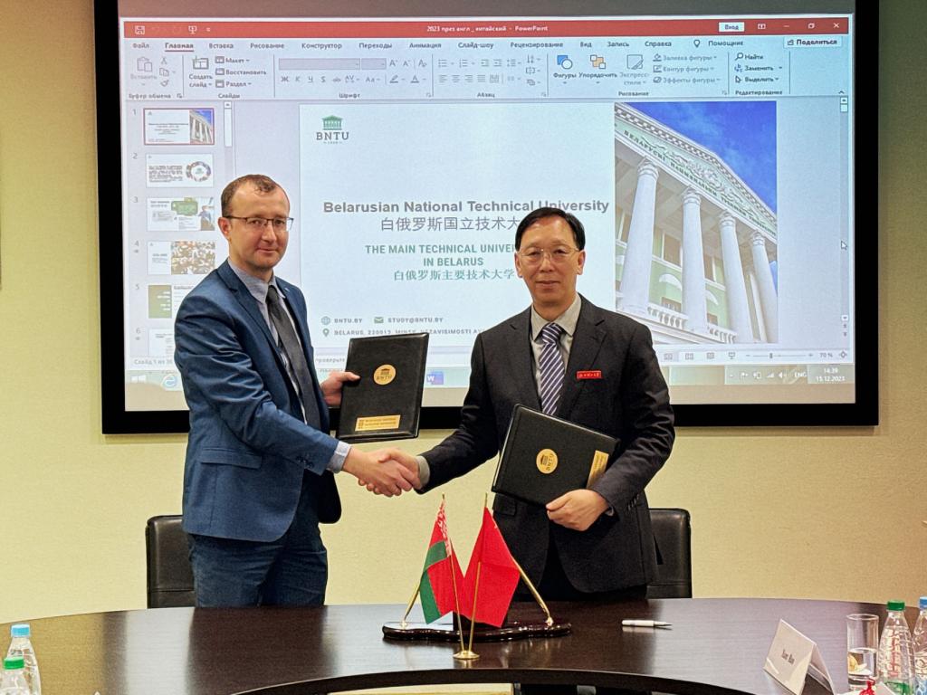 在白俄罗斯明斯克,代表团赴白俄罗斯国立技术大学参加Yuri Nikalaichik校领导座谈会并签署合作协议,参观白俄罗斯国立技术大学科技园和工程建筑实验室,并洽谈两校开展有色金属等方面的科技合作,冬、夏令营等人才培养合作,以及参加华文教育基地、我省汉语国际推广项目事宜。