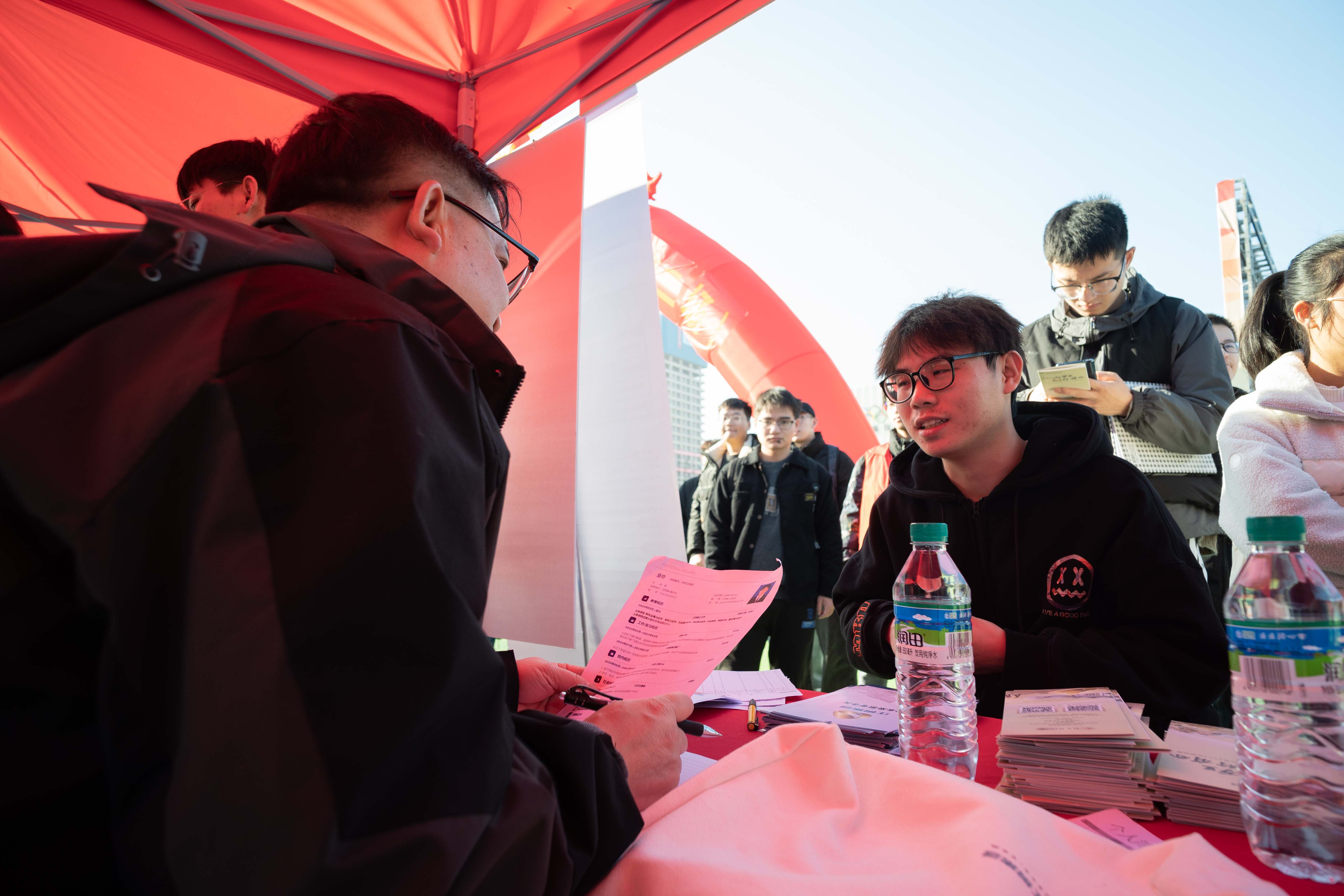 招聘会现场艳阳高照,热闹非凡,招聘展位整齐排列,各具特色。同学们穿梭于展位间,寻找心仪的单位与职位,老师们也在为学生积极寻找合适的岗位。各公司代表们热情地与同学们交流,详细介绍公司及职位信息。现场充满了机遇与希望,尤其是为刚参加完研究生初试的毕业生们提供了展现才华的舞台。