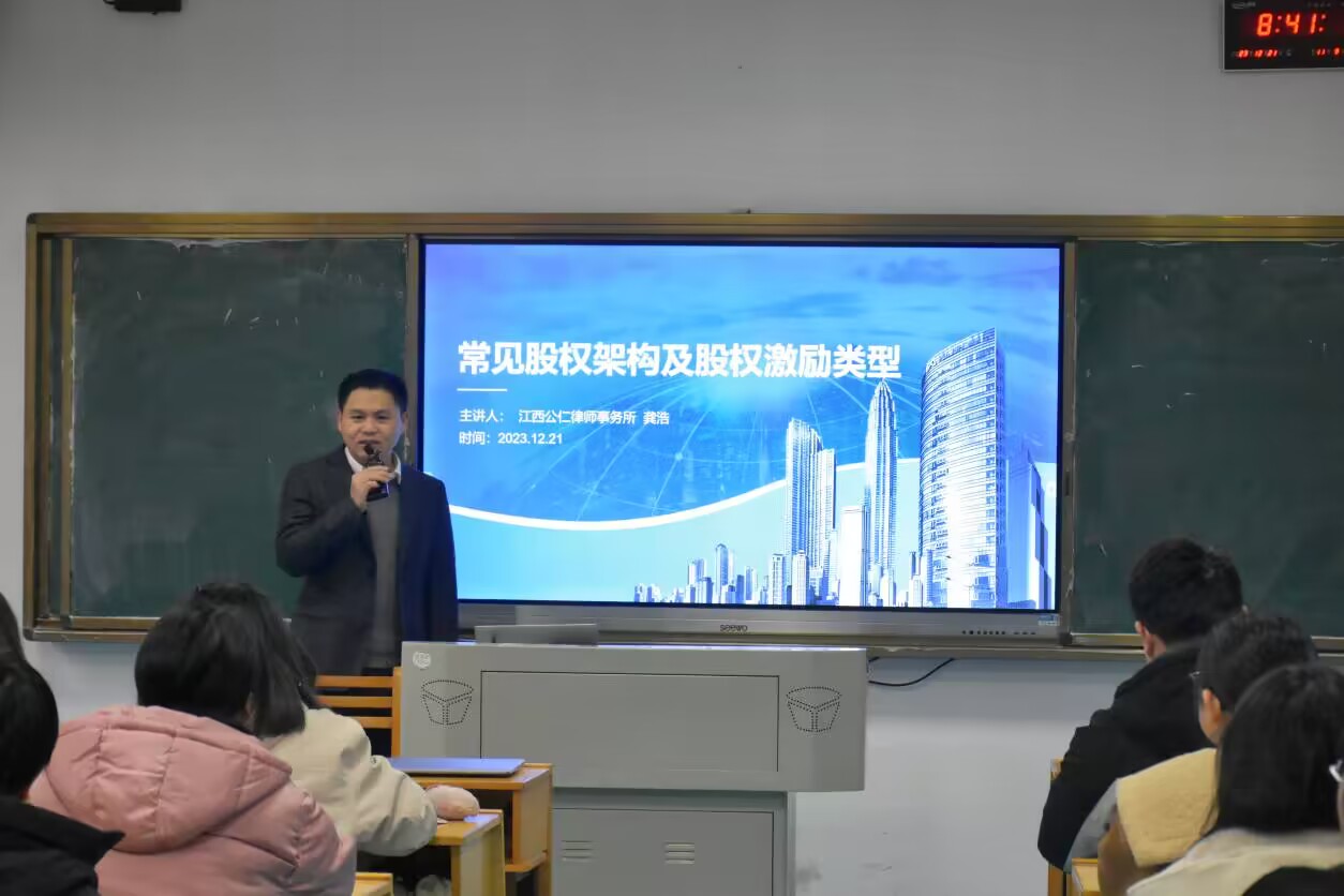 法学院段春霞老师一起,围绕“常见股权架构与股权激励类型”,面向法学院2021级学生开展了一堂别具风格的“双师同堂”课,示范课由法学院王翔老师主持。
