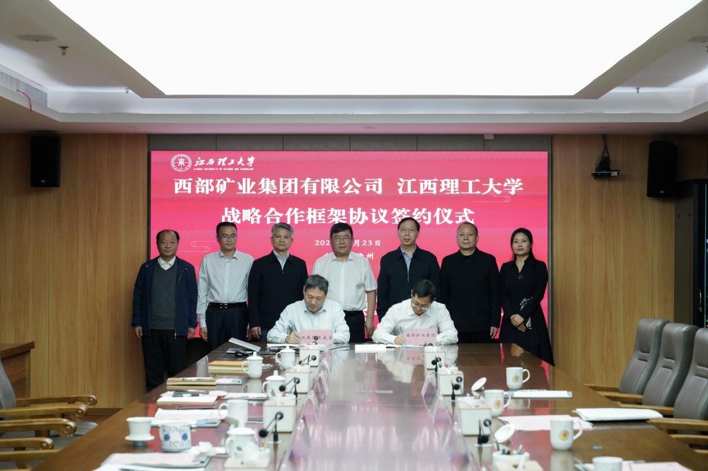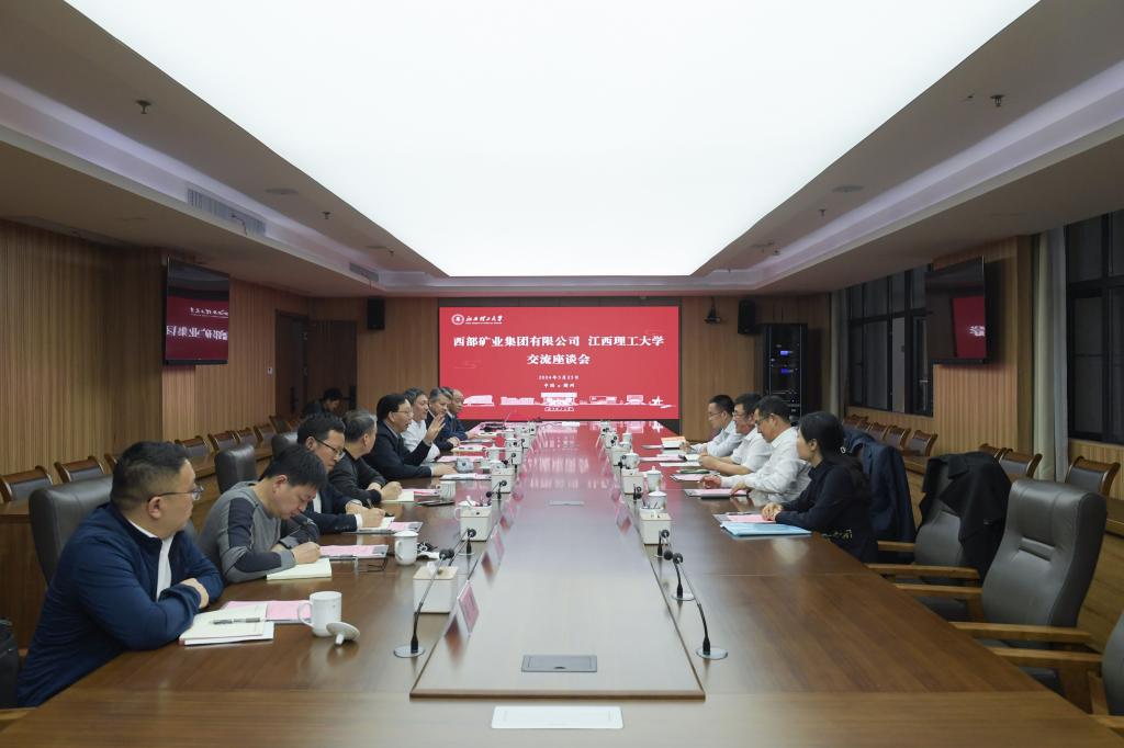 与西部矿业集团有限公司签署战略合作框架协议,围绕进一步深化产学研合作,着力推动人才、科技等方面合作落地见效进行了座谈交流。西部矿业集团有限公司党委书记、董事长张永利,总工程师、副总调度长蔡曙光,校党委书记杨斌,校党委副书记罗仙平,校党委常委、副校长唐云志、董冰岩参加座谈。