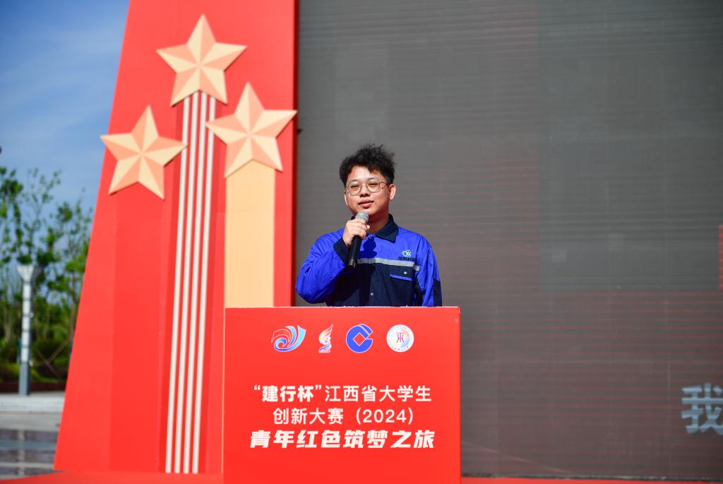 陈思凯同学以“稀世‘金’宝—铜阳极泥绿色提取技术赋能矿区振兴”为主题进行了分享。全省114所学校的300多名学生代表参加现场出征仪式,10万名“红旅”参赛队员线上观看出征仪式直播。兴国县委党校还为参与此次活动的师生们开展了一堂生动的红色党课教育,带领师生们感悟红色文化,重温党的发展历程。