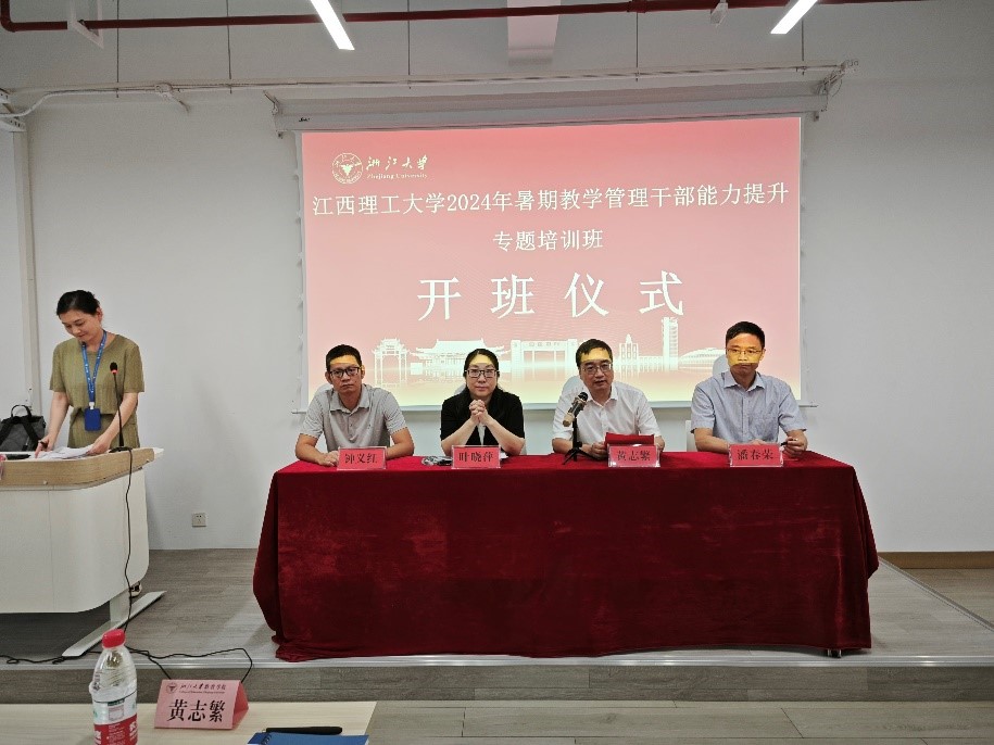 2024年暑期教学管理干部能力提升专题培训班在浙江大学紫金港校区开班。校党委常委、副校长黄志繁,教务处处长潘春荣,督查与评估处处长钟义红,浙江大学教育学院党委书记叶晓萍出席开班仪式。