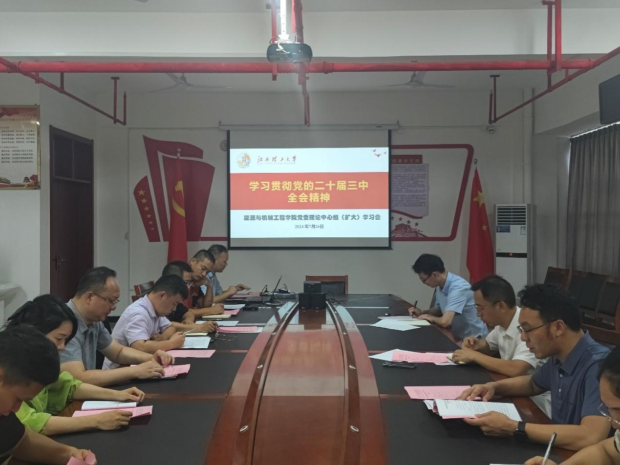 7月26日上午,能源与机械工程学院在综合实验楼A1105党员活动室召开党委理论学习中心组(扩大)学习会议,深入学习党的二十届三中全会精神。