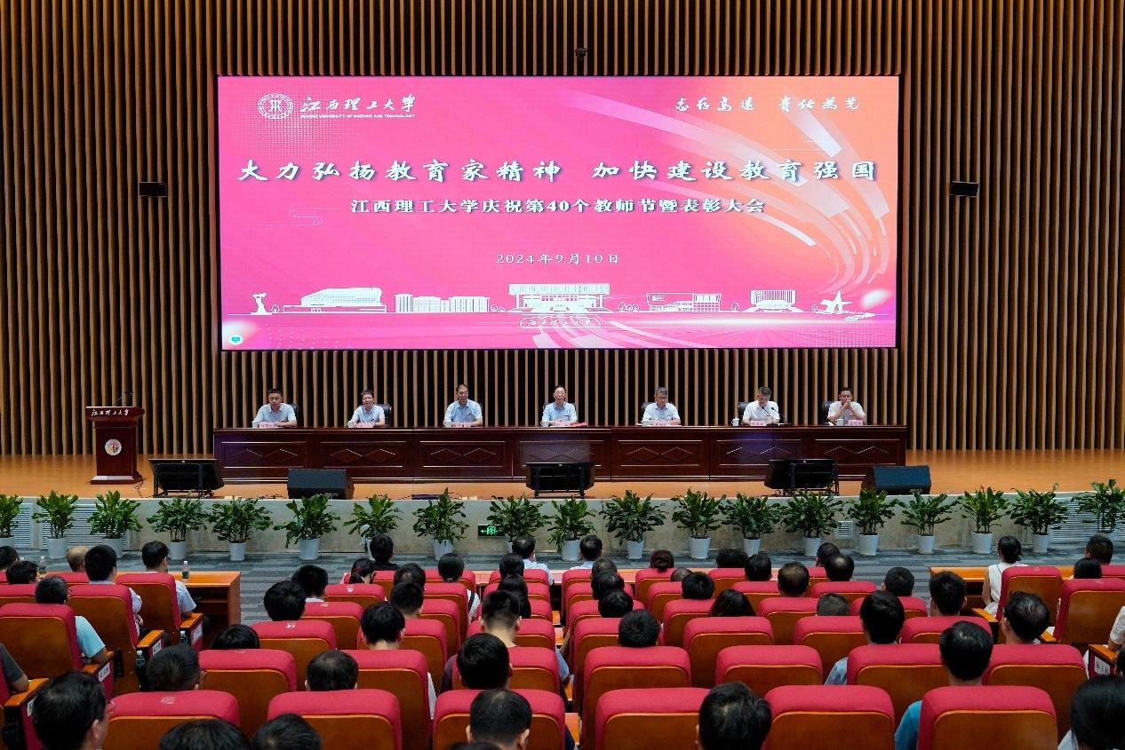 庆祝第40个教师节暨表彰大会在三江校区志远会议中心1号会议厅、南昌校区图文信息楼学术报告厅、先进铜产业学院(鹰潭)行政楼306会议室同步举行。全体在家校领导、党委常委出席,教师代表及受表彰教师代表参加。大会由校党委常委、副校长董冰岩主持。