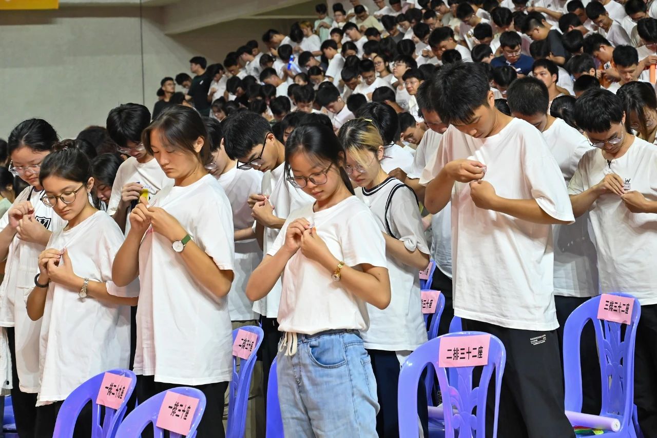 典礼上,全体同学进行了校徽佩戴仪式,校领导为新生代表佩戴了校徽。