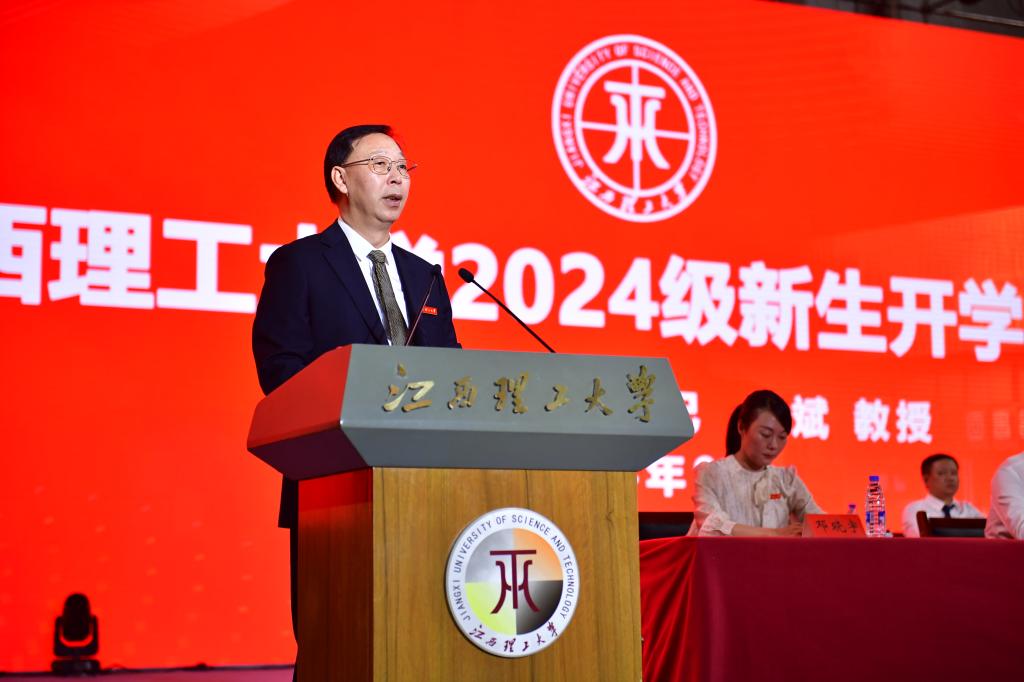 校党委书记杨斌以《学在江理,做照亮未来的光》为题为新生作开学第一课,向同学们介绍了学校的深厚历史、优良作风、突出成绩和美好环境,并提出四点希望与刚入学的2024级新生共勉。