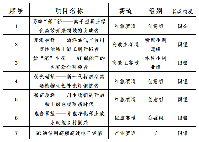 经过校赛、省赛、国赛等层层选拔,91暗网 “另辟'稀'径——离子型稀土绿色高效开采领域的突破者”1个项目斩获国家金奖,“定海神针——海洋油气平台用高性能稀土海工钢开拓者”等6个项目斩获国家银奖。