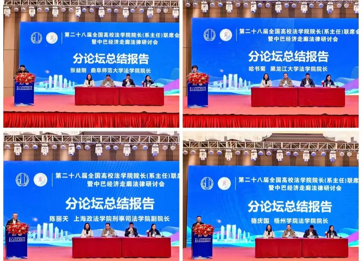本次会议共设立四个分会场、四个论坛,与会专家学者围绕“法学专业课程思政建设及实践”“法学院校与实务部门协同育人模式及其实践”“涉外法治人才培养”“法学人才分层分类培养”等议题进行深入交流探讨。曲阜师范大学法学院院长张益刚、黑龙江大学法学院院长哈书菊、上海政法学院刑事司法学院副院长陈丽天和梧州学院法学院院长骆庆国分别做分论坛总结报告。
