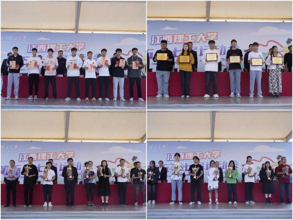 据悉,本届运动会共有480名教职工、1932名学生运动员,共计2412人参加比赛项目,涌现了18个先进集体。其中,在今年6月举行的江西省大学生田径比赛中,机械221班梁耀安以4分23秒21的成绩打破男子1500米校运会最高纪录;冯润泽、曾南方、金渊博、王剑平以3分23秒40的成绩打破男子4*400米校运会最高纪录;吕浩江、冯润泽、闫比成、曾南方以43秒16的成绩打破男子4*100校运会最高纪录;同时,在今年7月举行的第22届全国大学生田径锦标赛中:采矿工程211班邹吉椿以50秒03的成绩打破男子400米校运会最高纪录。