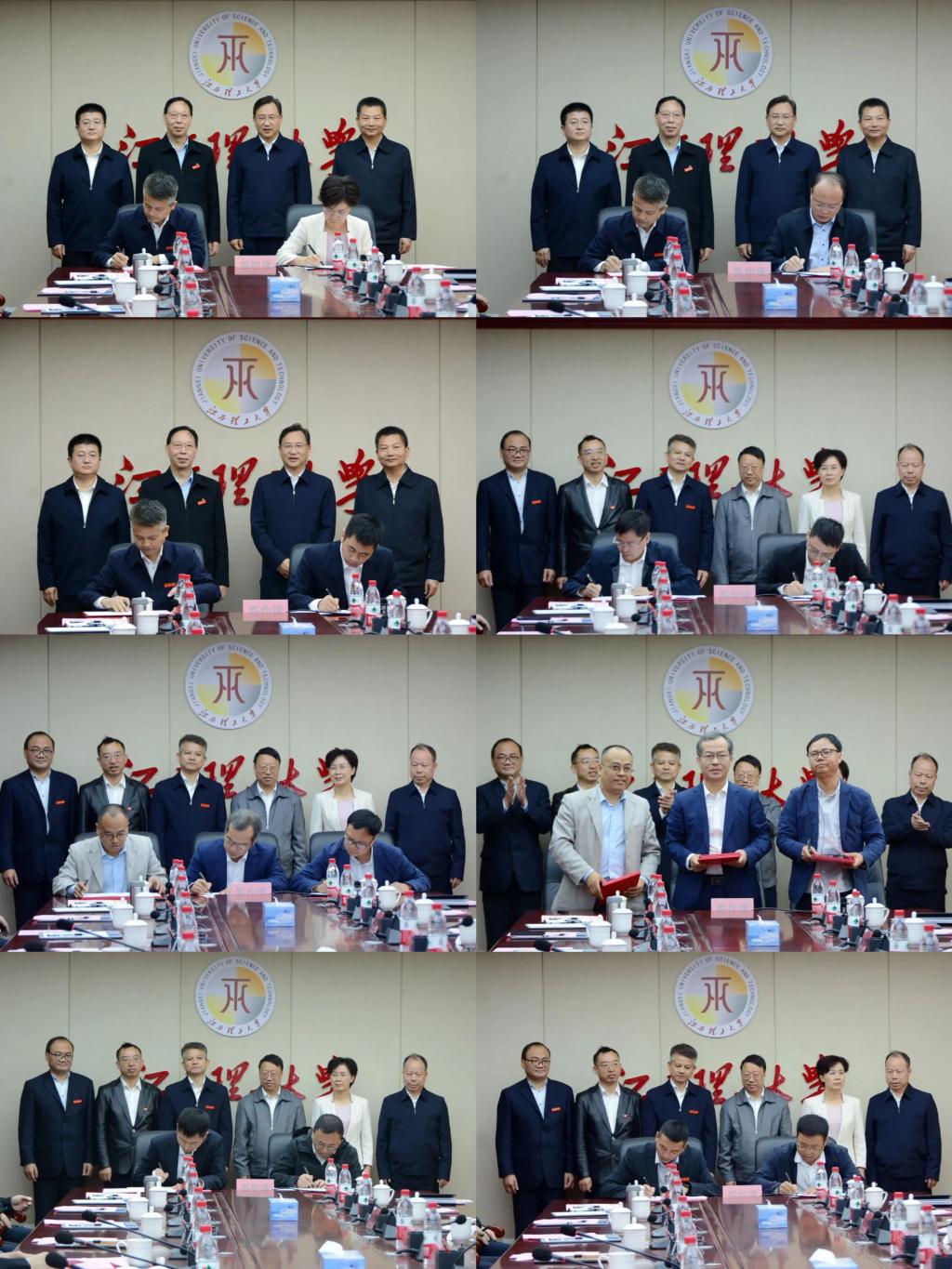 当天上午,双方分两批次签订了八项合作协议,分别为校方与新余市战略合作协议,与新余学院战略合作协议,与新钢集团战略合作协议,与先进金属材料江西省实验室合作共建协议,与分宜县科技成果转移工作站共建协议,以及三项科研项目合作协议。
