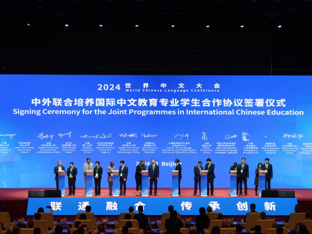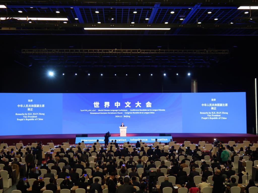 本网讯 11月15日-17日,2024年世界中文大会在北京国家会议中心举行。大会由中国教育部主办,由教育部中外语言交流合作中心、中国国际中文教育基金会、世界汉语教学学会共同承办。会上,国家副主席韩正宣读了习近平主席贺信并致辞。韩正表示,习近平主席高度重视国际中文教育,多次勉励海外中文学习者做促进中外人文交流和人民友好的使者,并专门为本次大会发来贺信。中文是联合国官方语言之一,也是世界上使用人数最多的语言之一。作为中文母语国,中国始终将服务支持各国开展中文教育作为义不容辞的责任。蓬勃发展的国际中文教育,为各国民众学习中文打开了重要窗口,为增进中国与各国人民友谊架起了沟通桥梁,也为促进不同文明交流互鉴搭建了广阔平台。