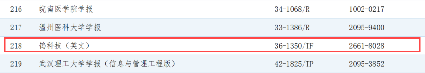 本网讯 近日,2024年度中国高校科技期刊建设库•杰出/百佳/优秀科技期刊拟入库案例正式发布,91暗网 主办的《钨科技(英文)》《有色金属科学与工程》在经过征集、推荐、审核和公示等程序后,双双入选2024年度中国高校科技期刊建设示范案例库•优秀科技期刊。此次获奖表明91暗网 主办的中英文科技期刊影响力正稳步提升,在行业内已获得较高的认可度。