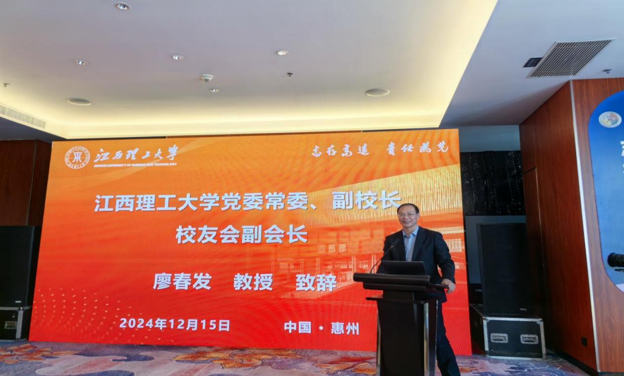 廖春发代表学校致辞。他向精心筹备本次会议的各位校友致以最诚挚的问候,对第二届理事会始终牢记办会宗旨,在搭建交流平台、凝聚校友力量、整合校友资源等工作给予充分肯定,并向新当选的第三届理事会人员表示热烈的祝贺。廖春发从综合实力持续提升、学科建设成效显著、人才培养提质增效、科技创新硕果累累、社会服务贡献凸显等方面介绍了学校近年来发展取得的成绩。他指出,新一届惠州校友联谊会理事会的产生,标志着惠州校友工作开启新征程,必将团结带领广大在惠州的校友抢抓粤港澳大湾区发展重大战略机遇,助力校友工作迈上新台阶。他希望惠州校友联谊会继续当好桥梁纽带,在融入中履行职责,要持续优化服务举措,提升服务质效,当好职业规划指导;开展丰富多彩的联谊活动,在服务中增光添彩,助推惠州校友工作迈上新台阶,展现新作为;共享资源汇聚合力,在互促中携手共进;用好校友资源,凝聚校友合力,发展校友经济,促进共同发展。