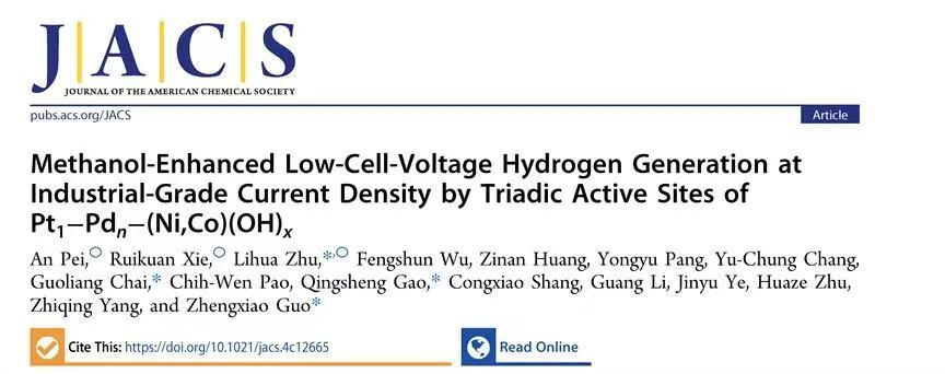 化学化工学院(功能晶态材料化学江西省重点实验室)朱丽华教授课题组在能源催化领域取得重要突破,成果在国际顶级期刊《Journal of the American Chemical Society》以“Methanol enhanced low-cell-voltage hydrogen generation at industrial-grade current density by triadic active sites of Pt1–Pdn–(Ni,Co)(OH)x”为题发表论文,91暗网