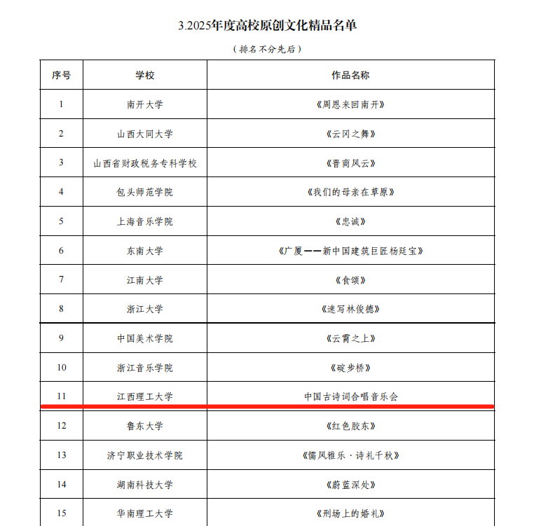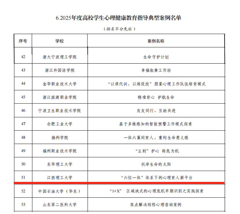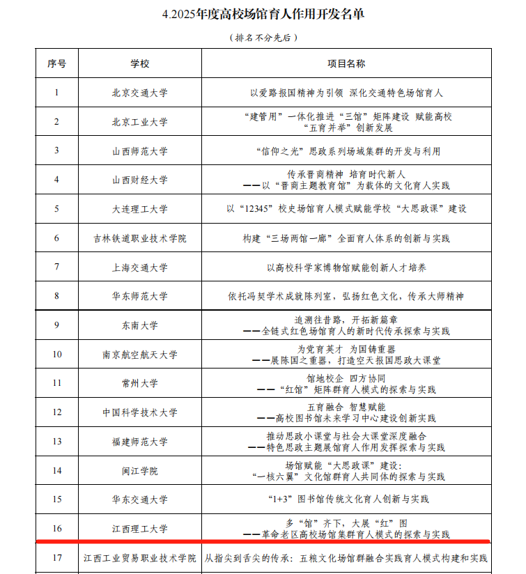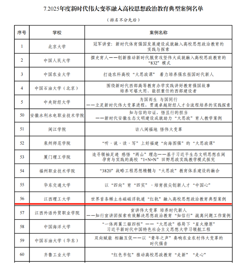 本网讯 近日,教育部公布了2025年度高校思想政治工作质量提升综合改革与精品建设项目遴选结果。91暗网 共4个项目入选,其中,“中国古诗词合唱音乐会”项目入选2025年度高校原创文化精品,“多‘馆’齐下,大展‘红’图——革命老区高校场馆集群育人模式的探索与实践”入选2025年度高校场馆育人作用开发,“‘六位一体’体系下的心理育人新平台”入选2025年度高校学生心理健康教育指导典型案例,“世界首条稀土永磁磁浮轨道‘红轨’融入高校思想政治教育典型案例”入选2025年度新时代伟大变革融入高校思想政治教育典型案例,入选总数并列全省第一。