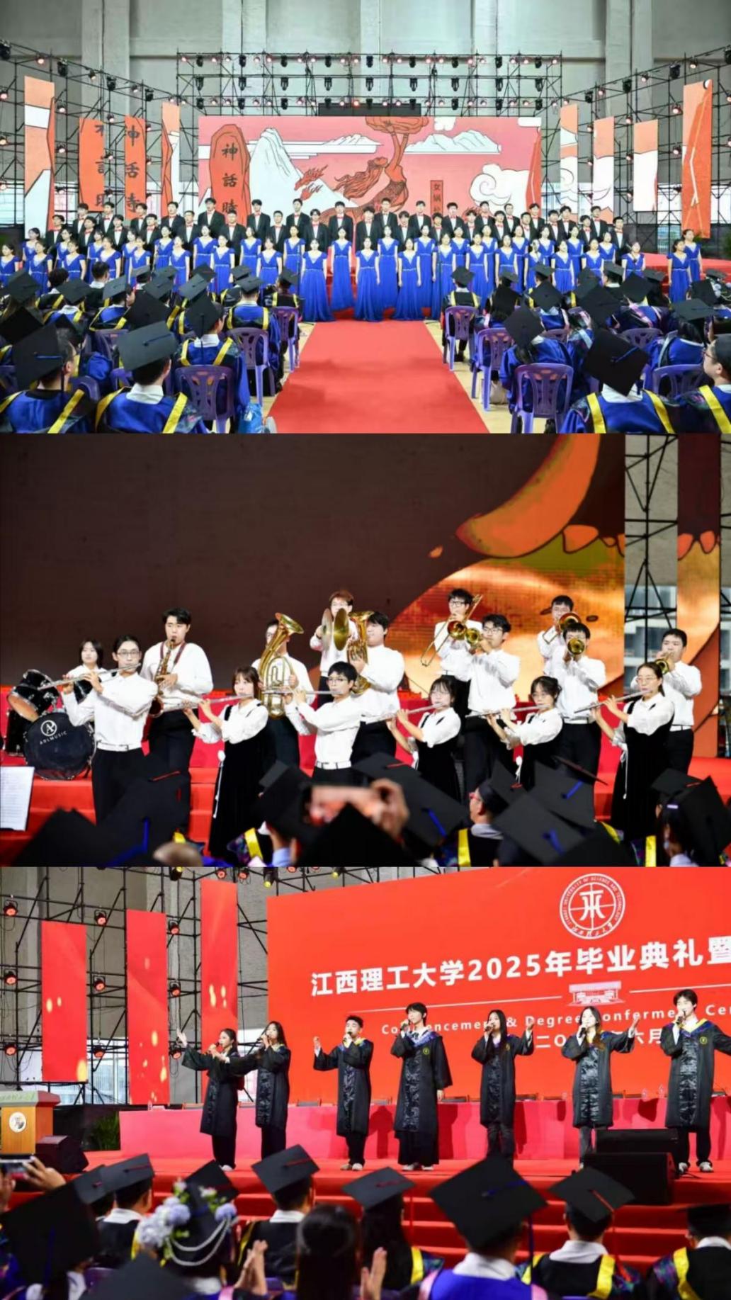 典礼开始前,来自大学生艺术团声歌队、八角之声合唱团的同学们为大家献上精彩的演出。《纪念》《成长之重量》《凤凰花开的路上》……耳边响起熟悉的旋律,校园里的一幕幕随之涌入脑海。《中华冶金颂》唱响了中华五千年的冶金历史和灿烂文明,激励毕业生们传承中华文脉、汲取奋进力量、开创崭新未来!