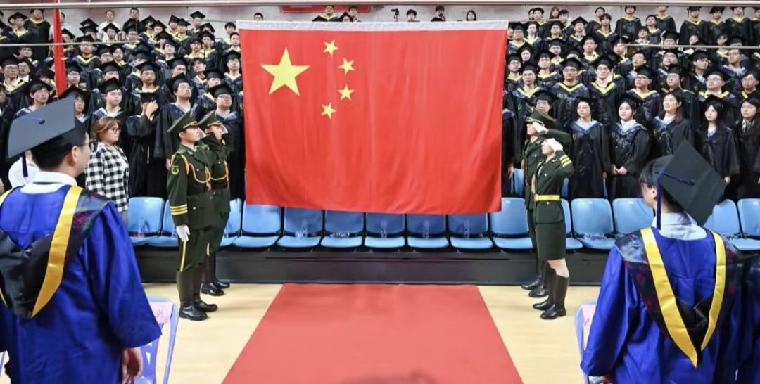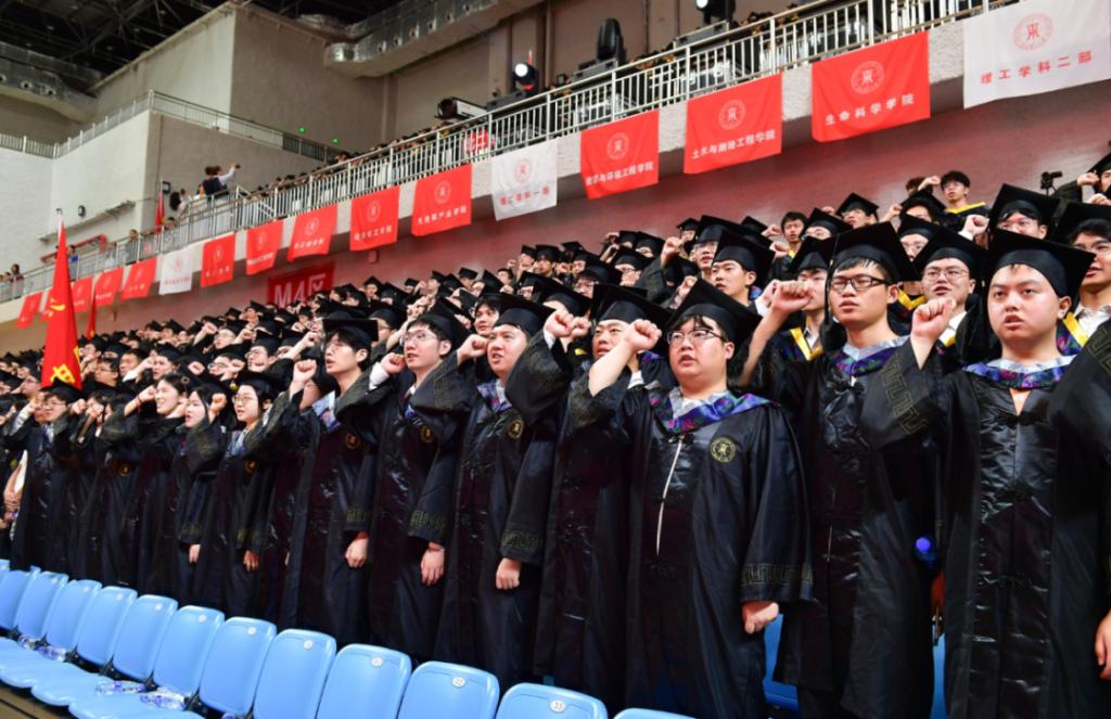 “传承红色基因、弘扬校训精神,牢记理工家训……”“告别了家乡亲切的明月,迎来了校园灿烂的朝阳……我们从这里启航,去拥抱明天的太阳!”毕业典礼在一句句铮铮誓言和校歌《我们从这里启航》的合唱声中落下帷幕。