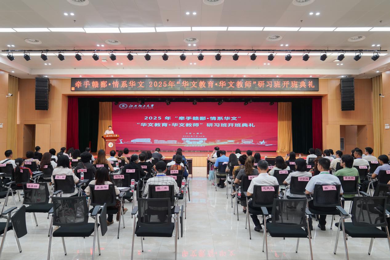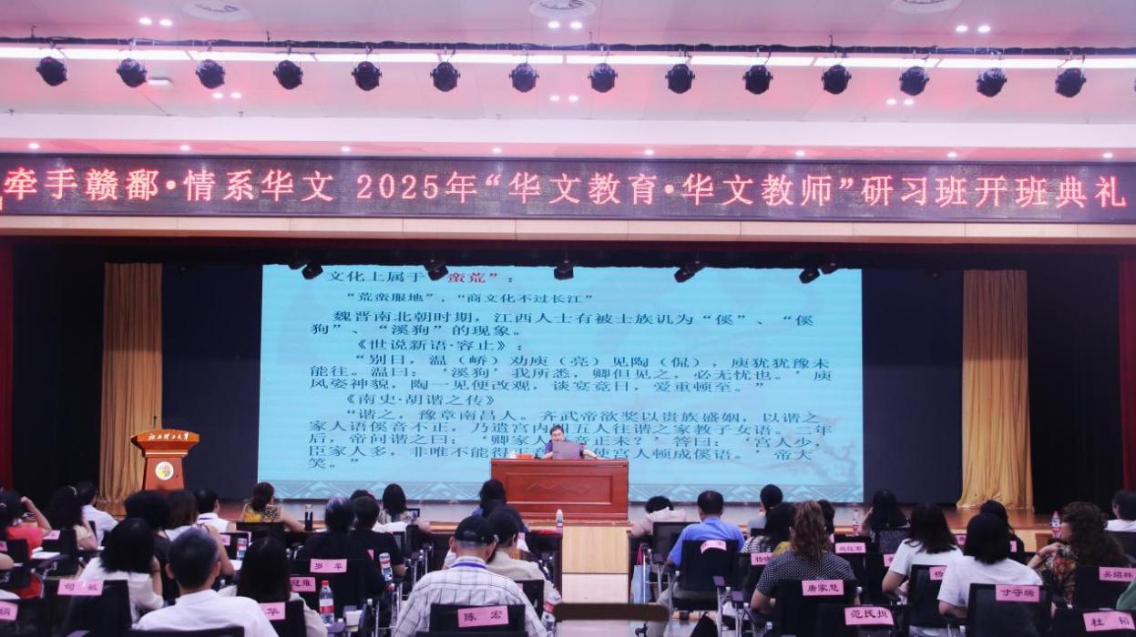 承办的牵手赣鄱·情系华文2025年“华文教育·华文教师”研习班在三江校区三实楼一楼多功能厅举行开班典礼。来自缅甸、美国、西班牙、越南、澳大利亚等17个国家的56位海外华文教师齐聚江西赣州,正式开启为期14天的研习之旅。