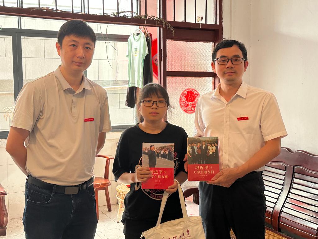 在易晓玲正式报到前,学院还成立家访小队,前往她在赣州市赣县的家中。推开家门的那一刻,没有陌生的距离感,更像是家人间的久别重逢:老师们坐在客厅里,和易晓灵及家人拉起家常,了解她的备考经历、对大学生活的担忧,耐心解答专业学习、校园生活等疑问。临行前,还拿出提前准备的“成长礼包”——里面包含学生手册、校园地图、文具等。院长徐中辉特别送上《习近平与大学生朋友们》一书,寄语她从书中感悟青年担当,既以学识改善家庭困境、撑起“小家”,更立报国之志,以过硬本领服务“大家”。“到了大学也要保持这份拼劲,遇到困难随时找我们,学校就是你的另一个家。”老师的叮嘱像长辈的牵挂,让易晓灵倍感温暖:“本来还担心一个人去学校会紧张,现在有老师陪着,感觉像家人送我上学一样,特别踏实。”
