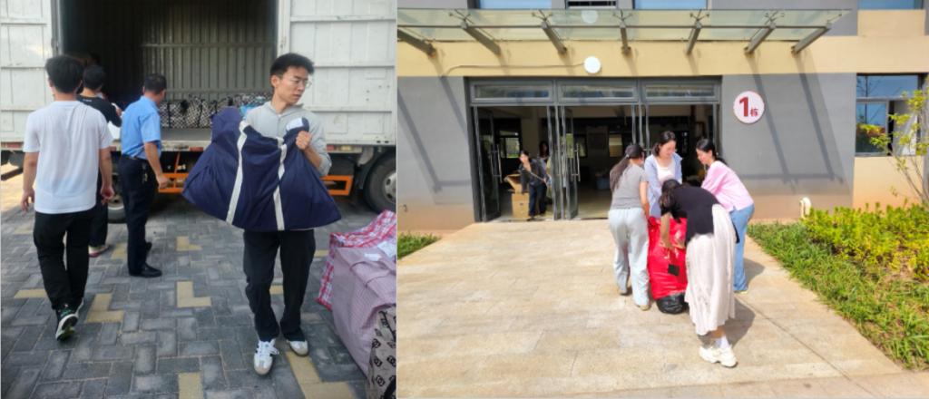 其中,搬迁学院严格落实“五个一”要求:成立搬迁工作专班;制定详细实施方案与应急预案;召开专题搬迁会议;安排班主任、专职教师全程跟班指导;实现“逐栋、逐间、逐人”通知确认,防范舆情风险。冶金工程学院提前筹备运输车辆,组建50人志愿者队伍,事后及时为行李淋雨学生发放被子等物资补贴,24小时解决生活诉求;化学化工学院师生协同,班主任现场指导分类无标签行李,辅导员参与托运行李,让学生倍感安心;应急管理学院安排多辆三轮车,帮助学生快速搬运行李;资源与环境工程学院第一时间成立搬迁专项工作组,先后召开辅导员例会、班长支书例会和生活委员座谈会,逐一梳理搬运路线、车辆、行李打包、应急等关键环节。院领导、辅导员提前深入宿舍走访,将同学们就搬迁时间、空调使用、热水使用、饮水就餐等10余条需求记录在册、闭环解决,做到“需求不过夜”。同时多个搬迁学院设立“校区搬迁服务队”,实现“点对点、人对人”无缝衔接,全方位保障搬迁安全、有序、温暖。