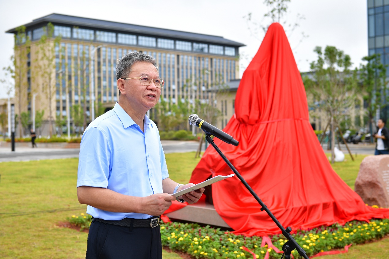 徐光宪院士学生代表、中国科学院院士严纯华教授在揭幕仪式上讲话,他首先向学校以及设计两位院士雕像的艺术家致以最崇高的敬意和最诚挚的感谢。他深情回顾了自己三十余载间深受先生学术与人格的熏陶的求学经历。他表示,在徐光宪院士身上,不仅学到了串级萃取理论和高灵敏度稀土分析技术,更深刻感受到先生“甘坐冷板凳”的科研精神、诲人不倦的教育情怀,以及将个人事业与国家命运紧密相连的崇高境界。他勉励青年学子不仅要瞻仰塑像,更要领悟其背后的精神内核。认清稀土资源的战略地位,学会在人生中“萃取”知识与真理,从中感悟“奉献”的价值,将个人的理想追求,融入国家和民族发展的伟大事业中,书写无愧于时代的青春篇章!