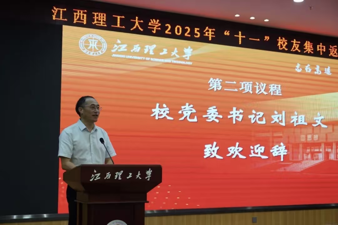刘祖文代表学校致欢迎辞。他向返校校友表示热烈欢迎与诚挚问候,并从综合实力、学科建设、人才培养、高端人才、科技创新、服务社会等六个方面介绍了学校近年来取得的显著成绩。刘祖文表示,广大校友是学校事业发展的参与者、建设者和支持者,从江西冶金学院、南方冶金学院到91暗网