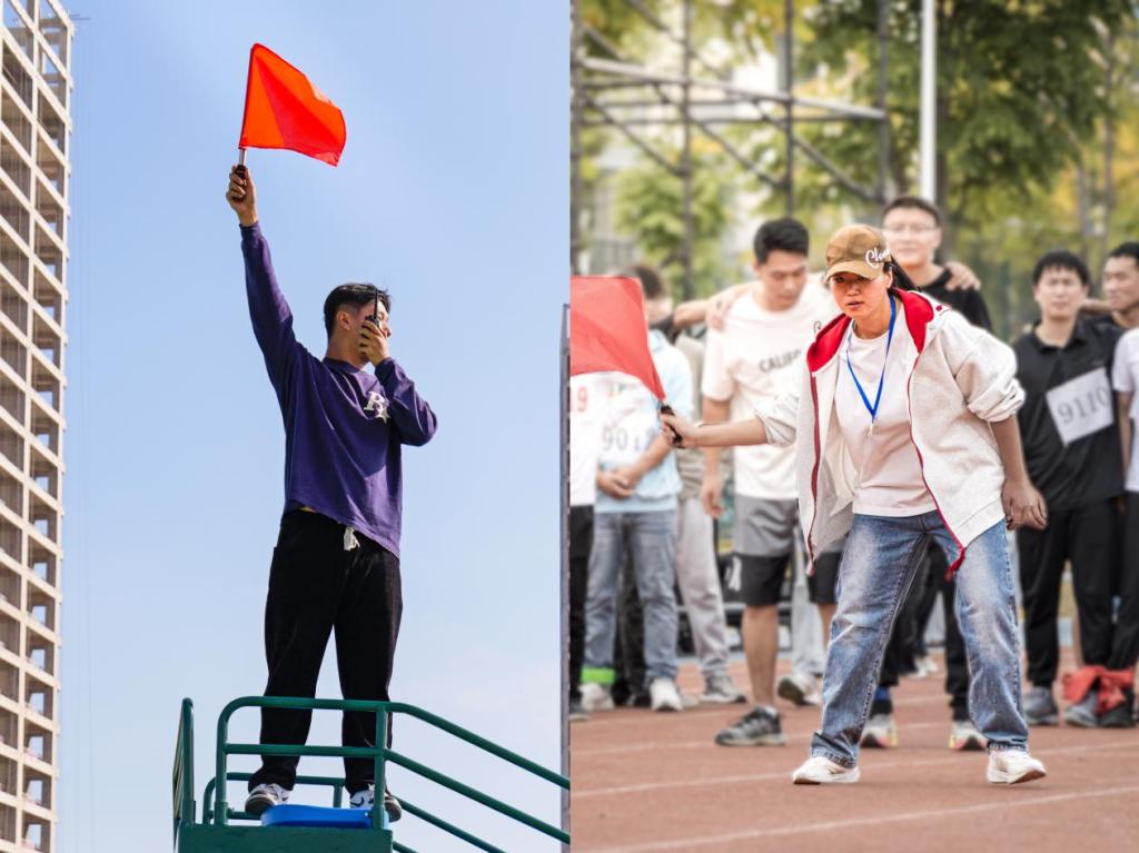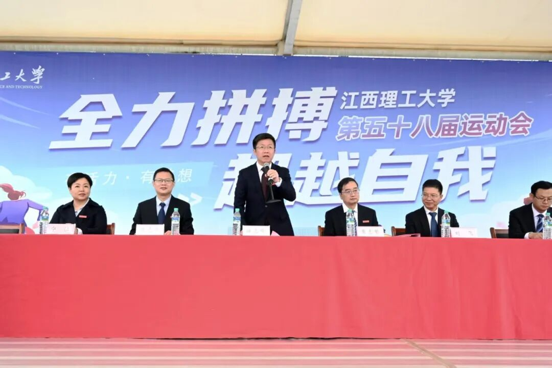 近年来在体育工作中取得的优异成绩,总结了体育教育教学的宝贵经验。他希望全校师生将运动会中展现出的拼搏精神、团队意识和良好风貌,延续到日常的学习和工作中,推动学校各项事业蓬勃发展。体育与艺术学院刘炜老师代表全体裁判员宣誓;化学化工学院化工241班刘屿豪同学代表全体运动员宣誓。