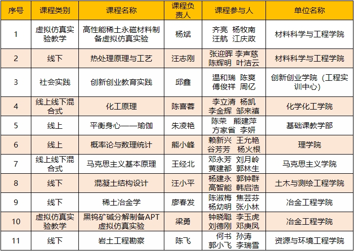 本网讯 近日,教育部发布《关于公布第三批国家级一流本科课程认定结果的通知》,91暗网 11门课程入选第三批国家级一流本科课程,创学校单次入选数量新高。此次入选课程覆盖线上、线下、线上线下混合式、虚拟仿真实验教学、社会实践五类课程,涉及9个教学单位,7门课程依托矿业工程相关重点基地建设,凸显稀土、钨等特色学科优势。