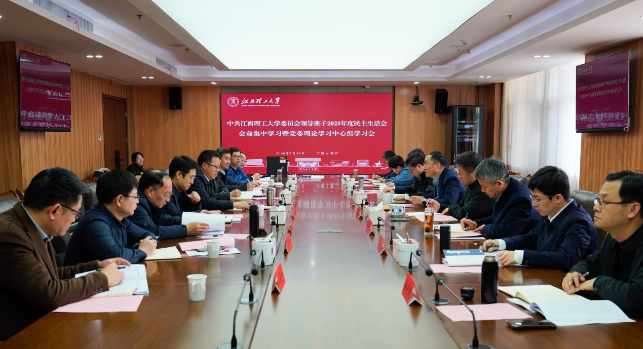 党委领导班子2025年度民主生活会会前学习暨党委理论学习中心组学习会在三江校区濂溪楼2号会议室召开。会议深入学习贯彻习近平新时代中国特色社会主义思想和党的二十届四中全会精神、习近平总书记在中央政治局民主生活会上的重要讲话精神,深化落实中央八项规定精神,推进作风建设常态化长效化,为高质量开好民主生活会筑牢坚实思想基础。学校领导班子成员、党委理论学习中心组成员参加会议。会议由校党委书记刘祖文主持。