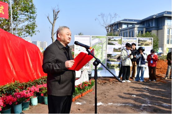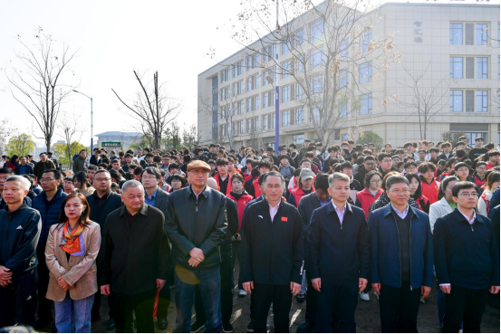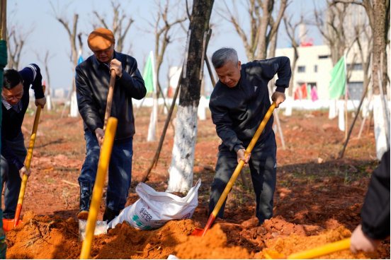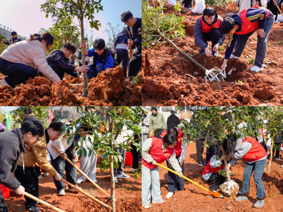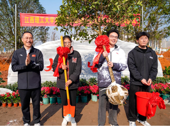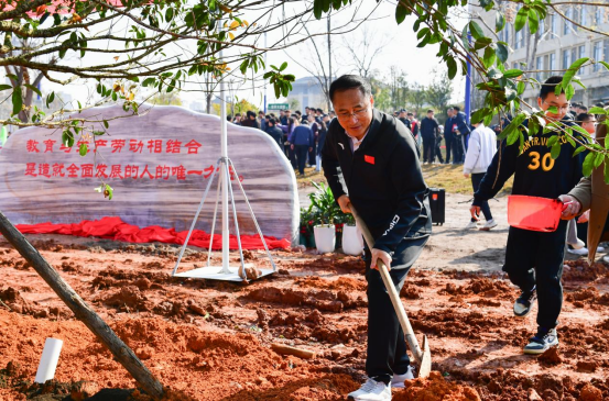 刘祖文为师生代表授予劳动工具和树苗。随后,与会领导、校友代表和师生共同挥锹铲土、栽种树苗,为校园添绿、为青春播种。