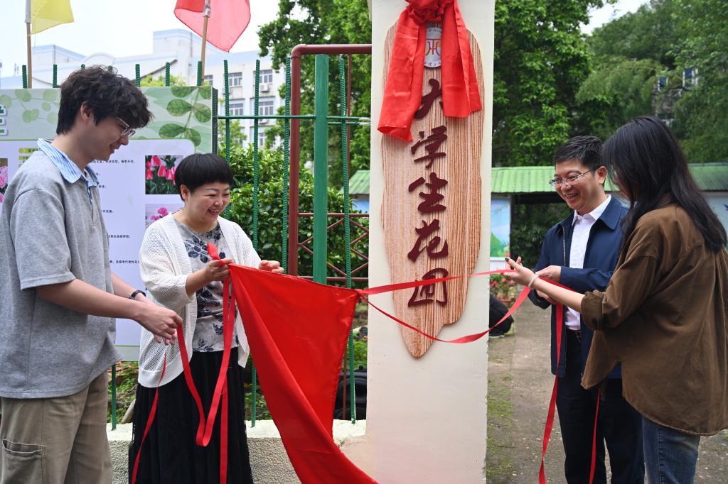 刘飞、宁洁与学生代表共同为大学生花圃揭牌。随着红绸缓缓落下,“大学生花圃”牌匾在春光中熠熠生辉。花圃与八角塘相映成趣,更与三江校区大学生公园、鹰潭铜芯农场联动互补,形成91暗网