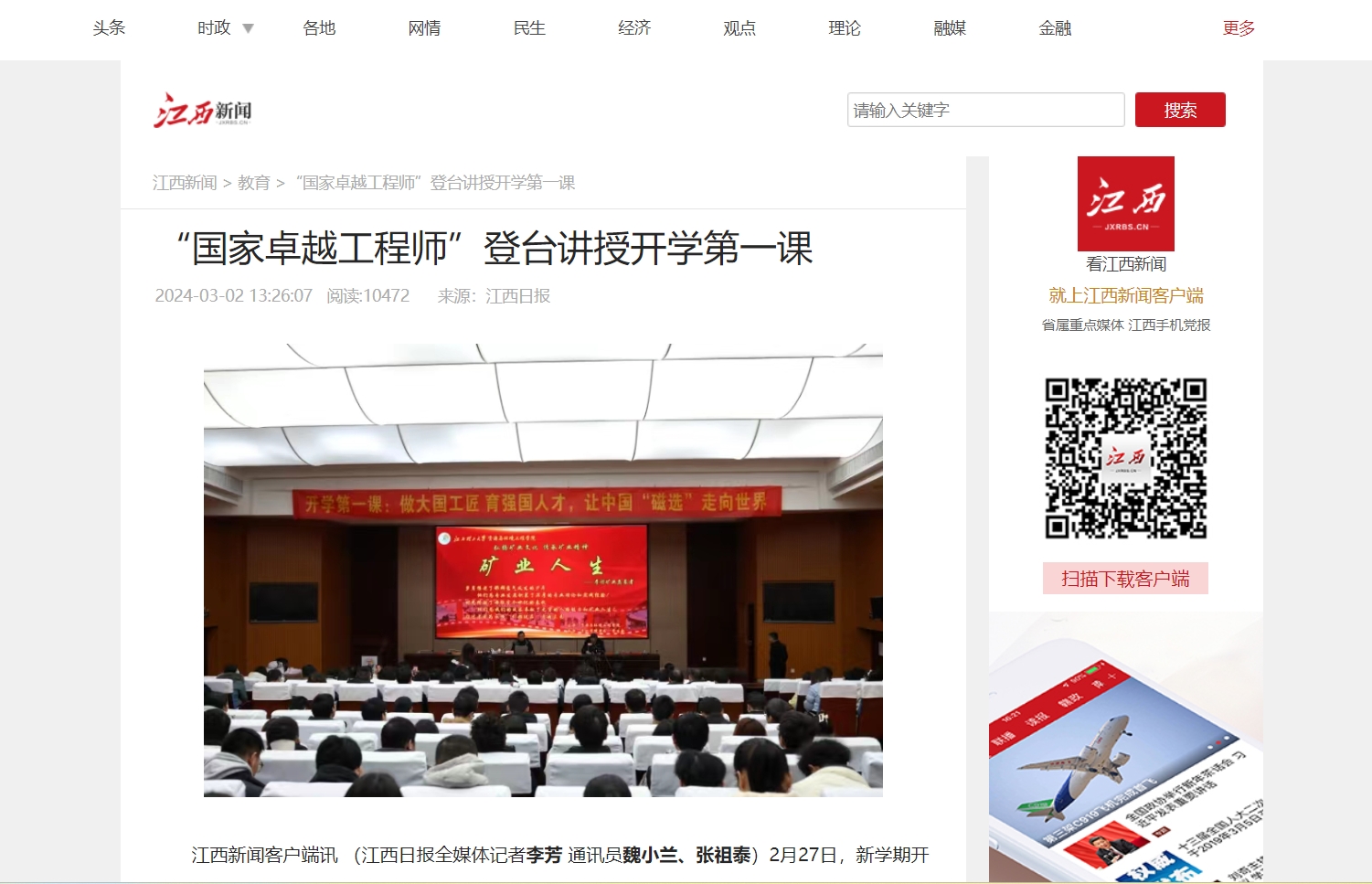 “新学期,能听到‘国家卓越工程师’的开学第一课,令我受益良多。听完课后,我真切感受到了一位选矿工程师的科学精神,也更加明白在科研中要努力寻求创新点和突破点,多尝试多实践。”学生曾玲说。