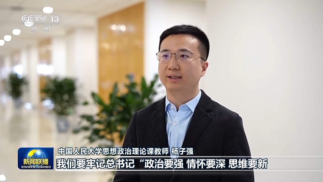 中国人民大学思想政治理论课教师 杨子强:我们要牢记总书记“政治要强、情怀要深、思维要新、视野要广、自律要严、人格要正”的殷殷嘱托,把道理讲深、讲透、讲活,引导学生从科学的立场观点方法中汲取智慧和力量,在中国式现代化的伟大征程中,挺膺担当、奋进向前。