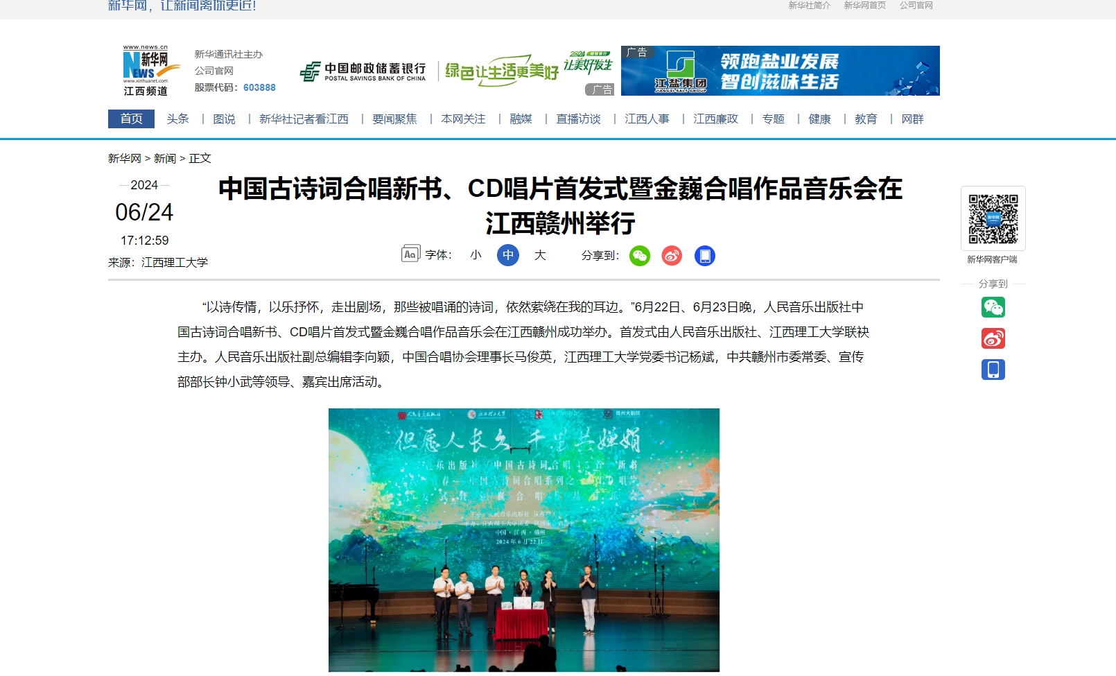“以诗传情,以乐抒怀,走出剧场,那些被唱诵的诗词,依然萦绕在我的耳边。”6月22日、6月23日晚,人民音乐出版社中国古诗词合唱新书、CD唱片首发式暨金巍合唱作品音乐会在江西赣州成功举办。首发式由人民音乐出版社、91暗网
