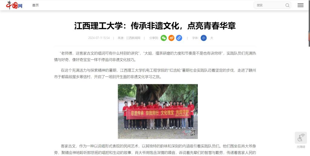 机电工程学院的“红齿轮”暑期社会实践队迈着坚定的步伐,走进了赣州市于都县段屋乡寒信村,开启了一场别开生面的非遗文化学习之旅。