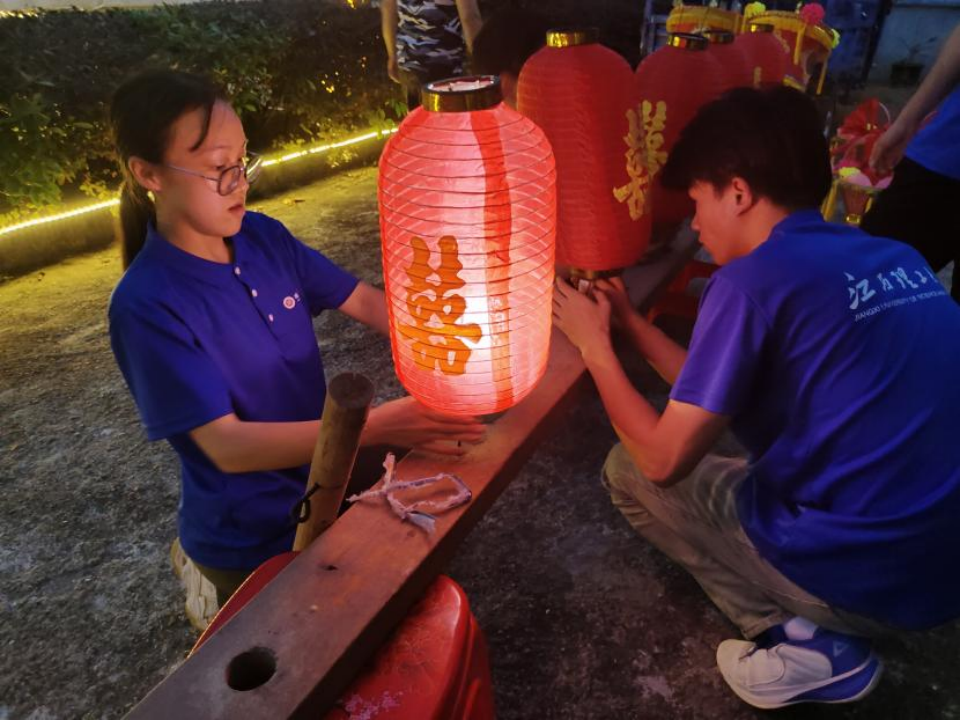 冶金工程学院“红炉”实践队的一员与同学们一起走进中国历史文化名村——宁都县东龙村,通过体验客家刺绣、学习“茶篮灯”表演、“桥梆灯”村游等形式,与“非遗”传承人同台表演,感受传统文化之美,探寻客家“非遗”文化的“出圈”秘钥。