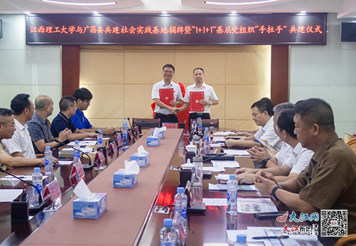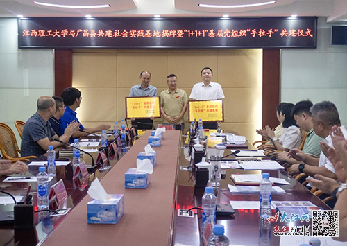 能源与机械工程学院第三党支部、广昌县旴江镇机关党支部、江西省广德环保科技股份有限公司党支部授牌,三方共建支部代表作了发言并进行了签约。