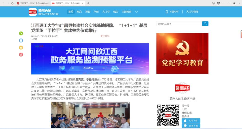 与广昌县共建社会实践基地揭牌、“1+1+1”基层党组织“手拉手”共建签约仪式举行,广昌县委书记吴自胜,91暗网