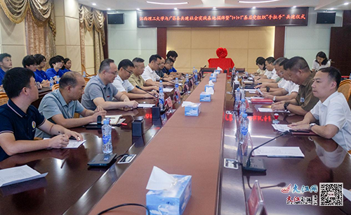 能源与机械工程学院党委书记饶先发及晁云等学院领导出席,广昌县委常委、宣传部部长林必茂主持,副县长黄懿,江西省广德环保科技有限公司董事长罗天贵,广昌县委人才办、旴江镇、县工业园区管委会、科技局、团县委等主要负责同志以及能源与机械工程学院暑期社会实践队全体成员参加。