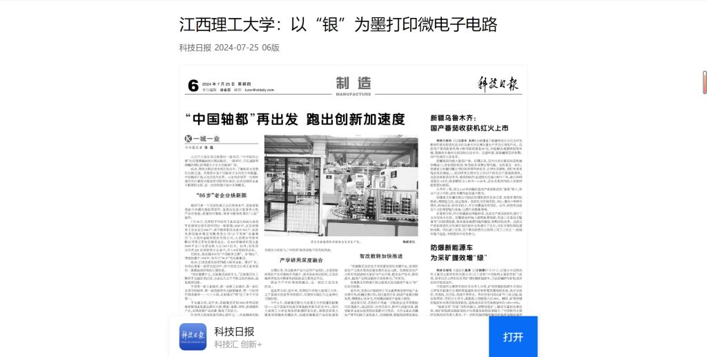 微电子电路用低温银系墨水是一种含有银纳米颗粒的特殊墨水,用于微电子电路的打印制造。科研团队研发的微电子电路用低温银系墨水,不仅兼容多种先进打印技术,还实现了微电子电路制造的高精度与低能耗,为通信、能源、医疗传感、可穿戴电子器件等多个领域的产品创新和性能提升打开新空间。