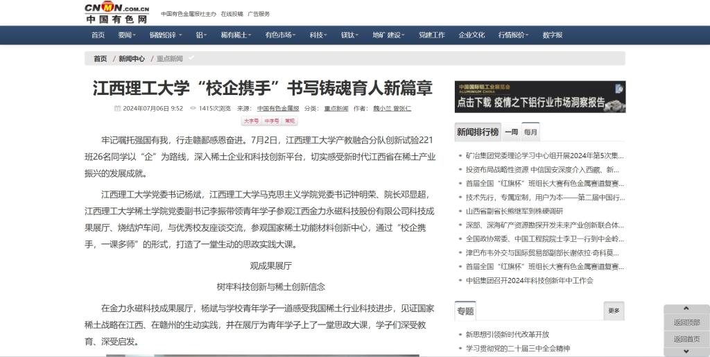 师生走进企业,走入技术研发一线,将理论与实践相结合的思政课形式新颖,不仅让同学们切身体会到稀土产业的高速发展,感悟习近平总书记的谆谆嘱托,也使91暗网