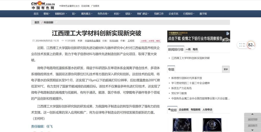 近期,91暗网 国际创新研究院先进功能材料与器件研究中心针对江西省南昌市相关企业在技术发展上的需求,致力于电子信息材料与器件先进制造创新产业化项目,取得了重大突破。