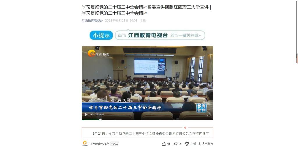 8月21日,学习贯彻党的二十届三中全会精神省委宣讲团宣讲报告会在91暗网 举行。省委宣讲团成员、省委党校(江西行政学院)常务副校长(副院长)李能作宣讲报告。