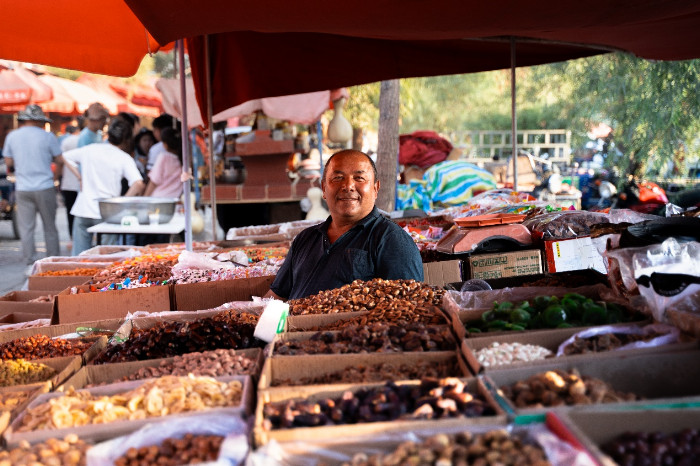 实践队员们赴阿克陶县的传统巴扎及阿克陶县恰尔隆镇巴扎体验了传统民族文化。巴扎,维吾尔语意为“集市”,下午八点后,是人群聚集的开始,人流如潮的步行街、各具特色的店铺,琳琅满目的地毯、丝绸、银饰等商品,不断挑动游客味蕾的烤全羊、拌面、抓饭、切糕等美食和散发着香味儿的特色水果,悦耳动听的维吾尔族音乐……