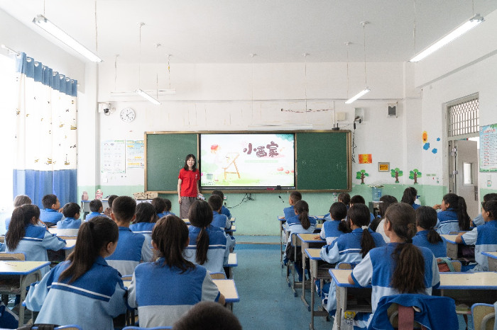 民族团结一家亲,和谐共融万载情。当实践队员们踏入孩子们的教室,实践队员们摇身一变,成为了美育导师,以生动活泼的方式向孩子们讲述着中华民族大家庭的丰富多彩的故事。他们强调了“民族一家亲”的深刻内涵,让孩子们深刻理解到各民族之间的紧密联系和深厚情感。从汉族的传统服饰唐装,到维吾尔族的艳丽艾德莱斯绸;从蒙古族的马背文化,到藏族的雪域风情……每一件传统服饰都承载着厚重的文化底蕴,展示了各民族的独特魅力。这些生动的讲述和展示,极大地激发了孩子们对传统文化的兴趣和好奇心。
